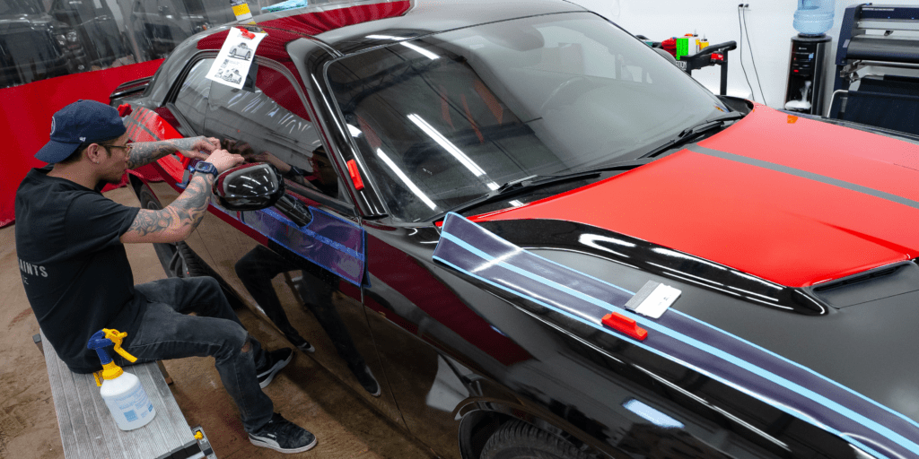 Precision in progress: our certified technicians use professional-grade vinyl from brands like 3M™ and Avery Dennison to ensure flawless, long-lasting installs.