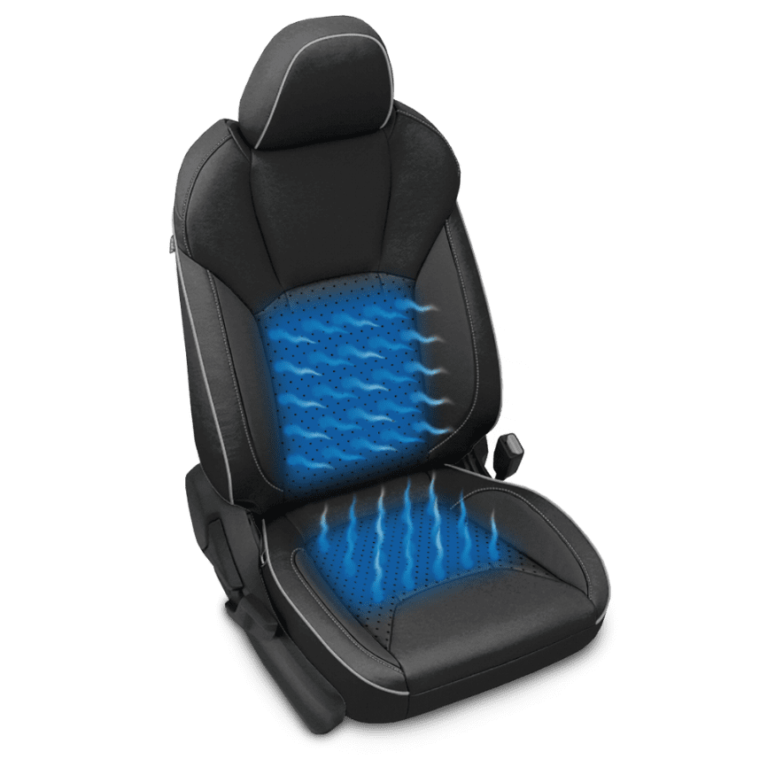 Cooled seats circulate air under and around you, reducing sweat, seat stickiness, and discomfort on hot summer days. You’ll enjoy personalized climate control without cranking up your vehicle’s A/C — saving fuel and increasing driving range (especially in EVs).